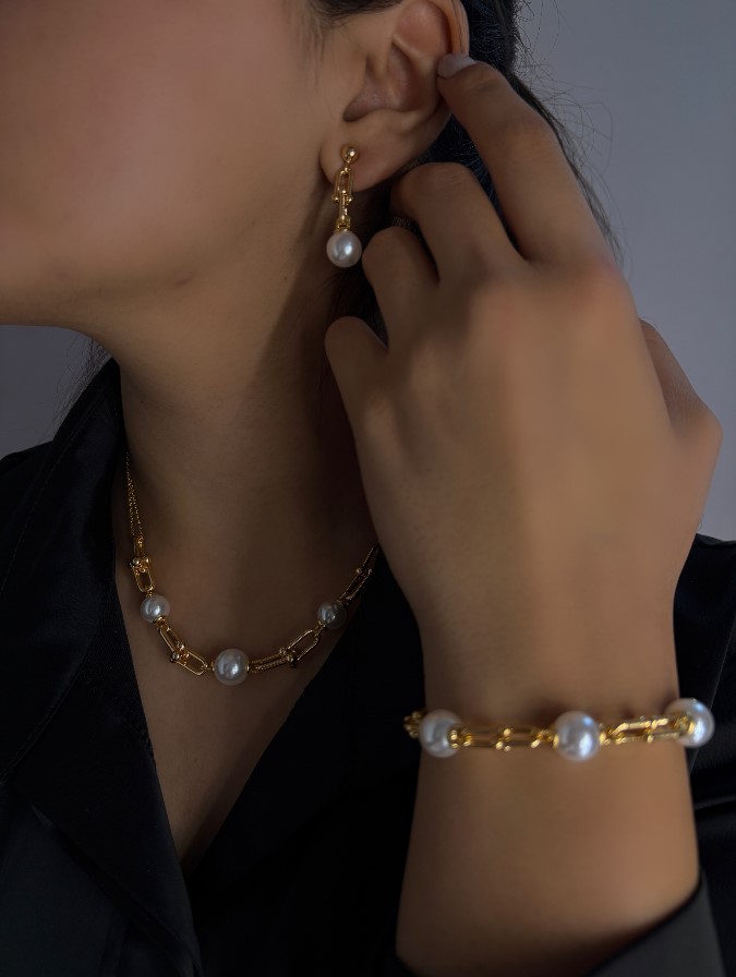 نیم ست تیفانی طرح مروارید و زنجیر رنگ ثابت با کیفیت بالا و ظریف