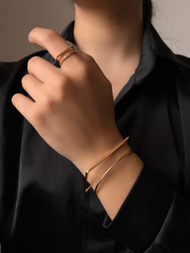 ست انگشتر و بنگل طرح هندسی رنگ ثابت با طراحی مینیمال و شیک