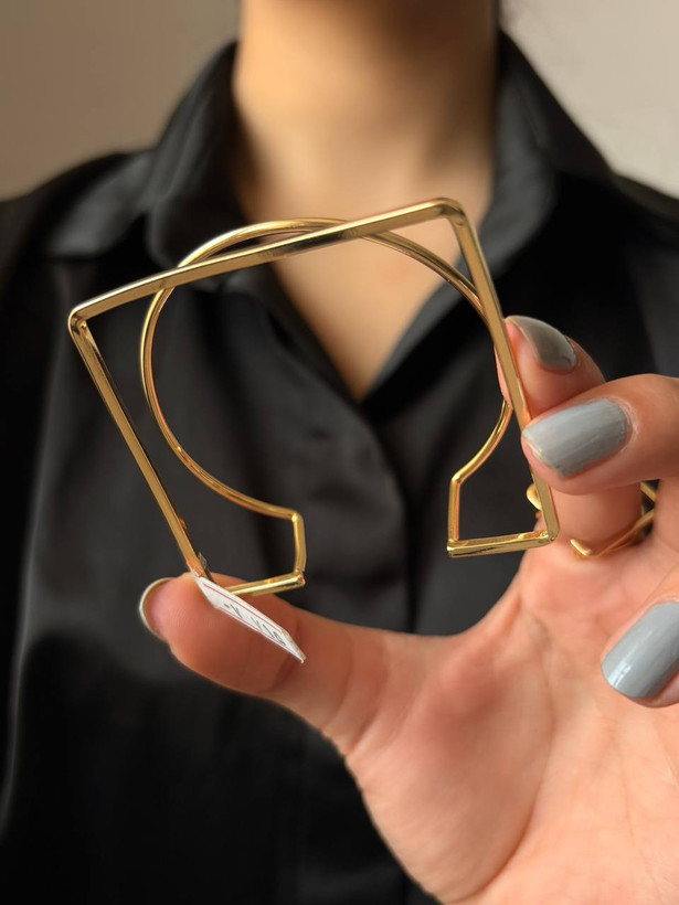 اجزای ست: دستبند بنگل فنری (باز) و انگشتر پایهدار هندسی